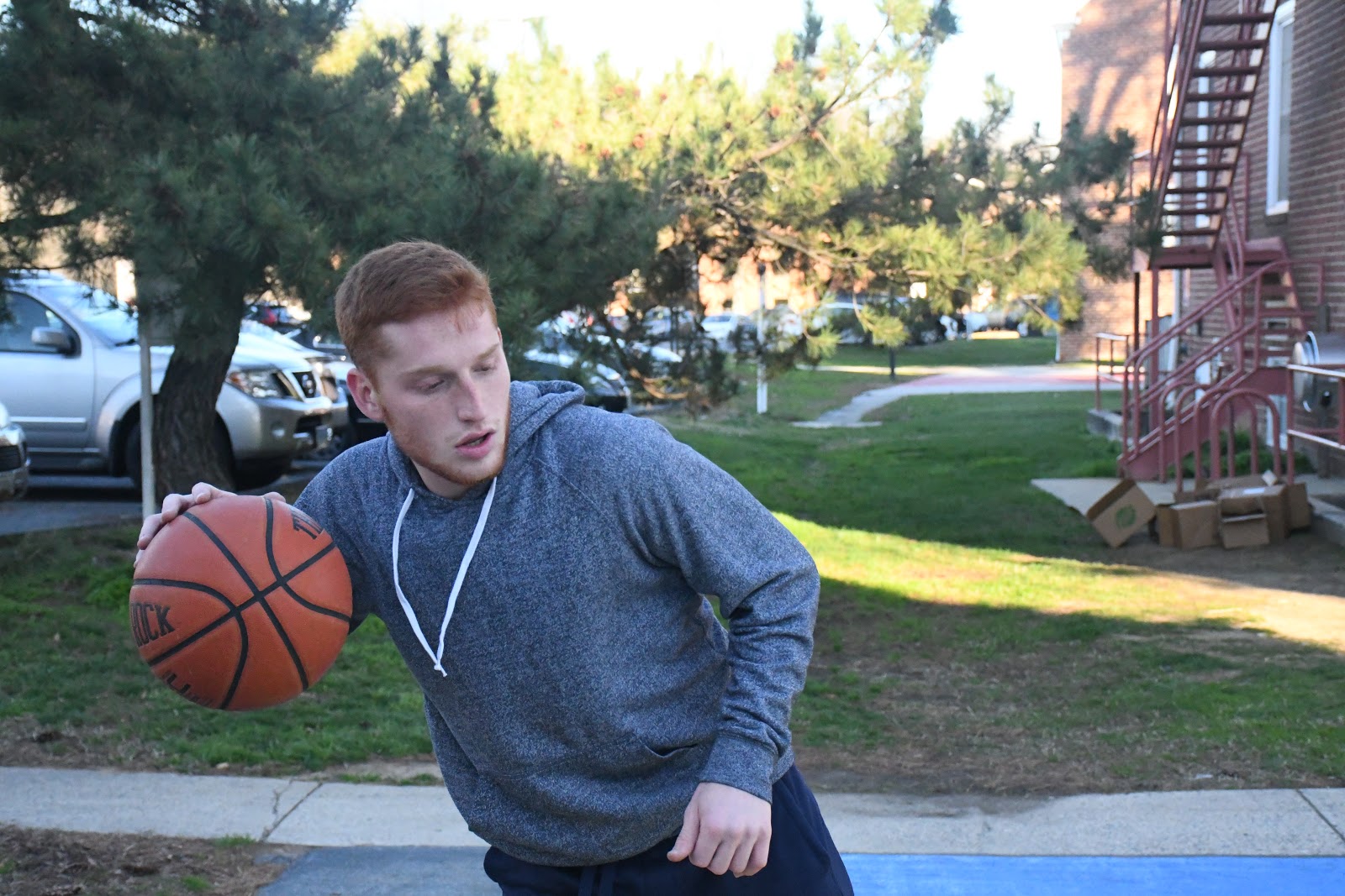 Sophomore journalism major JJ Zakheim retrieves the ball after making a mid-range jump shot.