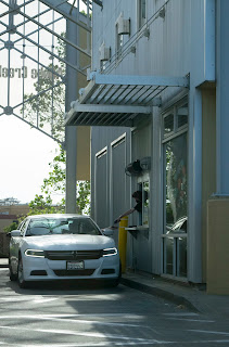 Although many aspects of normal life have shut down due to COVID-19, the Starbucks drive-thru line was still wrapped around the building on a Sunday afternoon. The location is offering pick-up at its front door, as well.
